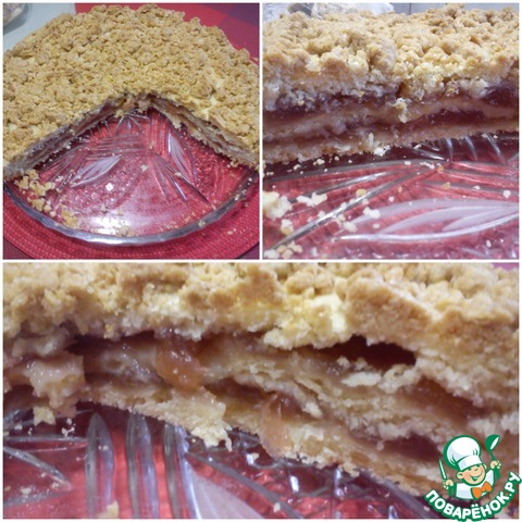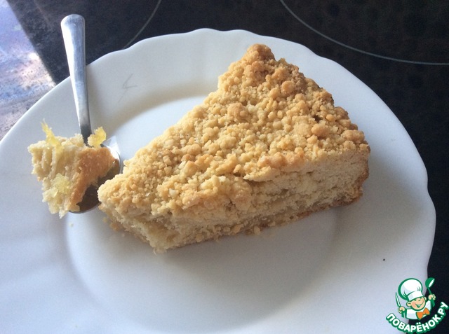 Верх пирога смазать теплым молоком и посыпать штрейзелем.