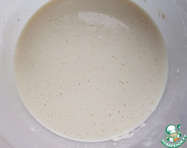 • Добавить просеянную муку и тщательно перемешать. Оставить в теплом месте в течение 1 часа.