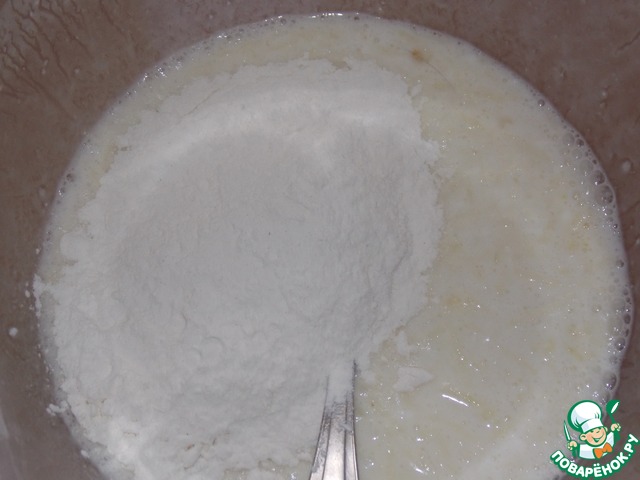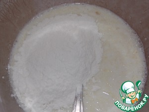 Добавить муку, перемешать. Тесто должно быть густое (как очень густая сметана).