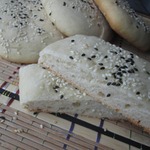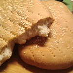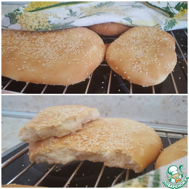 Слегка обмазываем лепешки маслом и посыпаем кунжутом с обеих сторон.