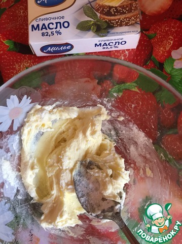 Тартолетки: Мягкое сливочное масло"Милье" растереть с сахаром.