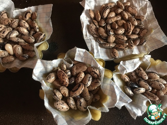 В каждую формочку положить квадрат пекарной бумаги и насыпать груз (фасоль). Это нужно чтобы во время выпечки края не опустились вниз. Фасоль потом можно сложить в отдельную банку и использовать в следующий раз. (В последний момент я заметила что у меня закончилась бумага и я использовала обычные листы из тетради). Поставить выпекаться в разогретую до 180 градусов духовку. Выпекать 10-15 минут. Затем груз с бумагой вынуть, выпекать ещё минут 5-10.