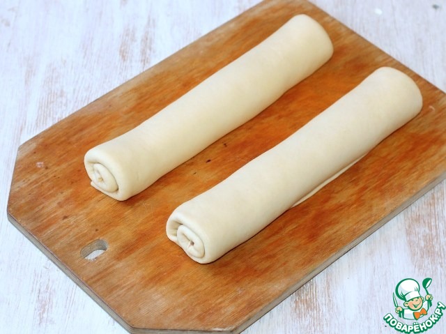 15... в рулон. Кладем роллы на застеленный пищевой бумагой противень. Закрываем заготовки не пленкой, а пищевым пакетом, чтобы тесто подходило и не обветрилось.