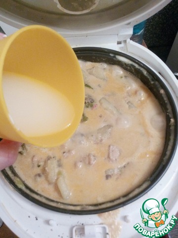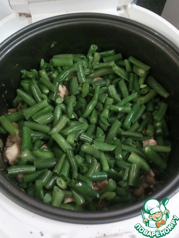 Добавляем фасоль и сухого молока. Не забывайте все мешать;)