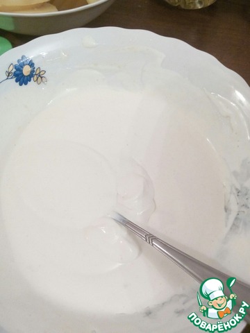 Делаем соус: сливки смешиваем со сметаной, добавляем чесночный порошок, горчицу по вкусу, соль по вкусу