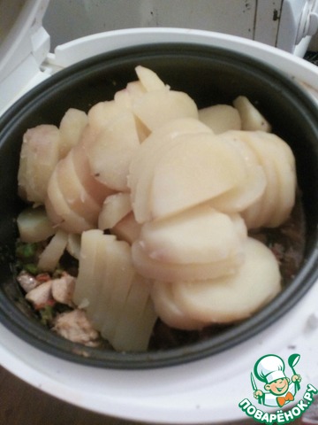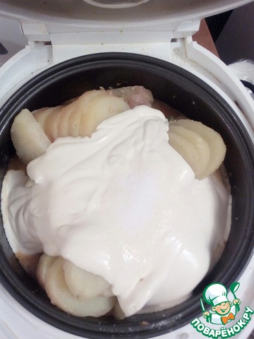 Заливаем соусом и под крышкой тушим мин 10-15, до готовности картошки