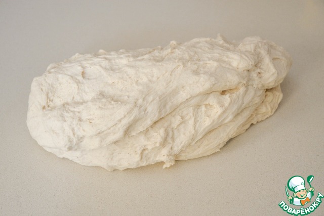 Тесто приятное, не липнет, рабочую поверхность я мукой не припыляю. -