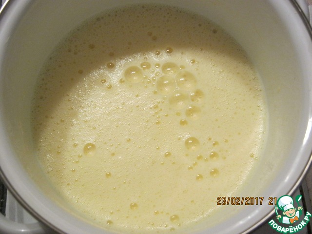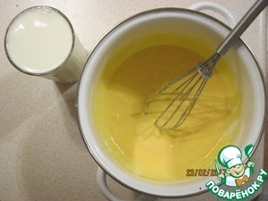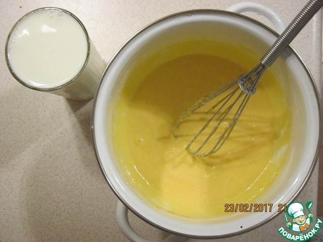 В желтковую смесь добавим молоко.
