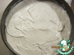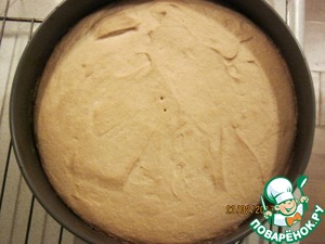 Выложить полученную бисквитную массу в форму, разровнять и поставить в духовку минут на 20 - 25, выпекать до готовности.