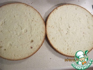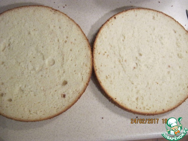 Разрезать на 2 коржа. Временно убрать в пакет.