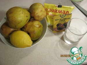 Приступим к изготовлению грушевой прослойки. Груши очистить от кожуры, семян и жесткой сердцевины. Нарезать некрупными кусочками. Лимон помыть, снять цедру, понадобится примерно чайная ложка. Выжать сок из половины лимона. Крахмал размешать в воде.