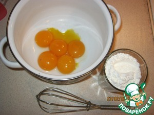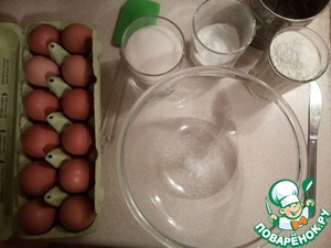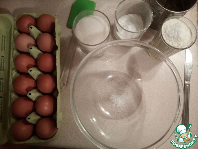 Приготовление этого торта, уж как водится, займет несколько дней, но результат того стоит. Начнем с бисквита. Продукты лучше приготовить заранее, чтобы все было под рукой. Форму диаметром 24 см застелить бумагой для выпечки. Духовку включить разогреваться до 170 - 180 градусов.