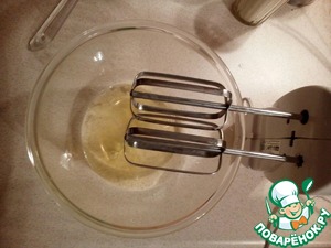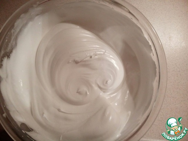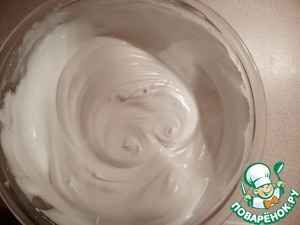 Затем, постепенно добавляя сахар, взбить белки до плотной пены и полного растворения сахара.