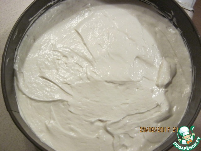 Вылить его поверх второго бисквита и убрать в холодильник на некоторое время.