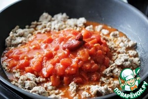 Тушить 40 минут до густоты. Мне хватило 10-12 минут, тут всё зависит от качества фарша и помидоров.
