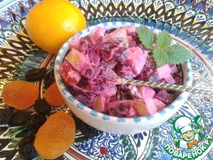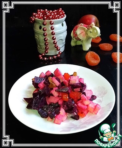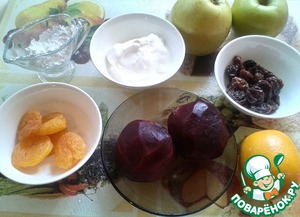 В яблоки со свеклой добавить изюм, нарезанную кусочками курагу.