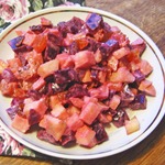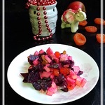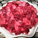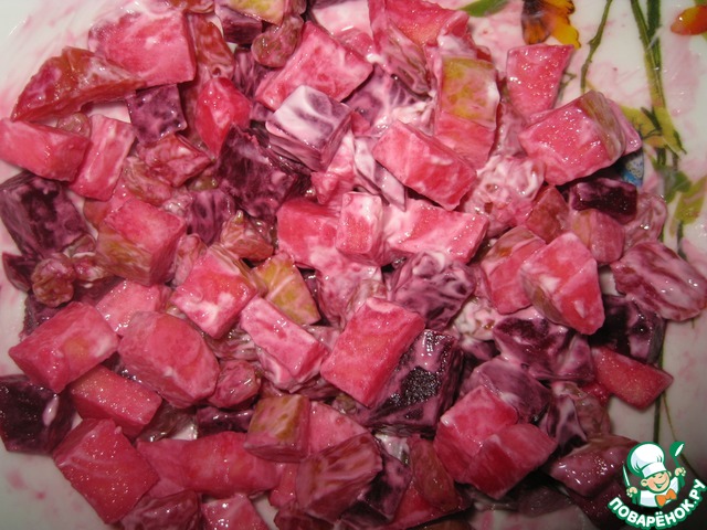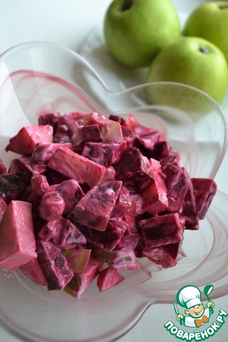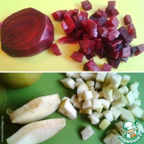 Очистить и нарезать кубиками свеклу и яблоки. Яблоки я не очищала. -