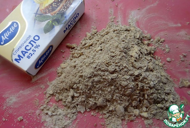Холодное сливочное масло изрубить в крошку с мукой, просеянной с солью, какао и сахарной пудрой. Сделать это необходимо именно ножом, а не руками, чтобы тесто не нагревалось.