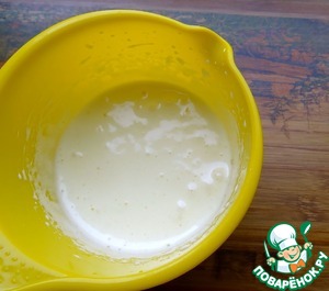 Яйцо и желтки взбить с сахаром до состояния белой пены.