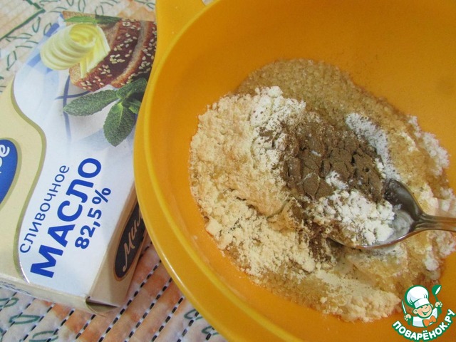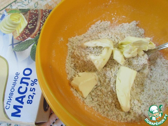 Добавить сливочное масло ТМ Милье и растереть все ингредиенты руками в крошку.