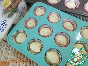 С помощью кулинарного мешка отсадить тесто в бумажные манжетки, заполняя пространство наполовину формочки.