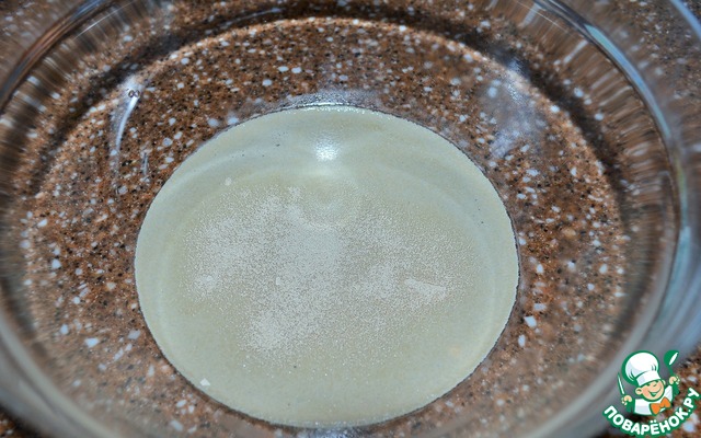 В 150 мл теплой воды размешать сахар, дрожжи и 20 г пшеничной муки. Накрыть и оставить на 10 минут в теплом месте.