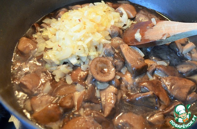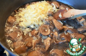 Грибы посолить, влить вино и тушить на малом огне 20 минут.
