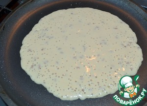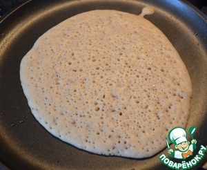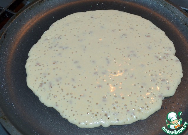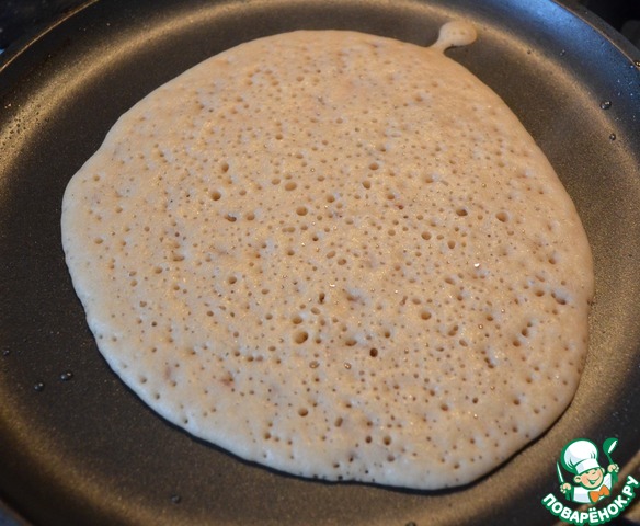 Как только блин полностью "подсох" сверху, аккуратно его перевернуть.