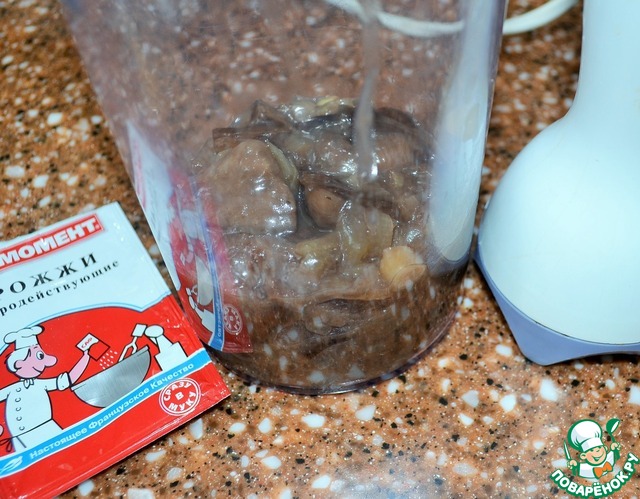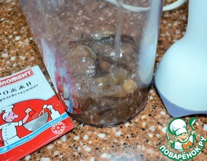 Половину грибов пюрировать погружным блендером до однородного состояния.