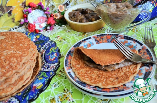 Ингредиенты для «Блины гречневые с соусом и грибами»: