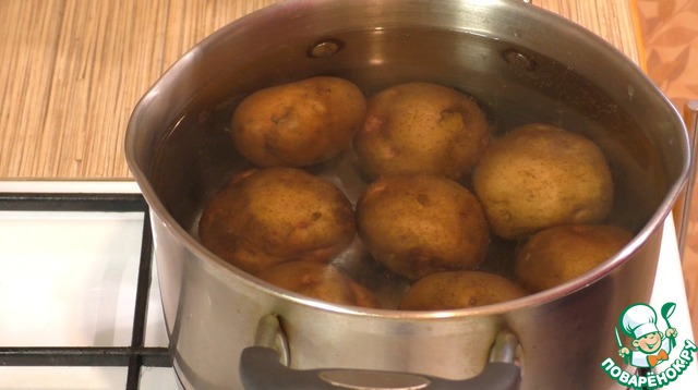 1. Отварите картофель в мундире в течении 20-25 минут (в зависимости от размера клубней)