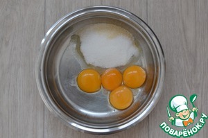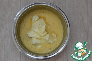 Просеять муку с разрыхлителем и добавить в яично-масляную смесь. Муки может потребоваться чуть меньше или больше.