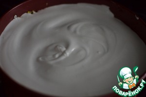 Готовим безе. Холодные белки взбить с сахарной пудрой до твердых пиков.