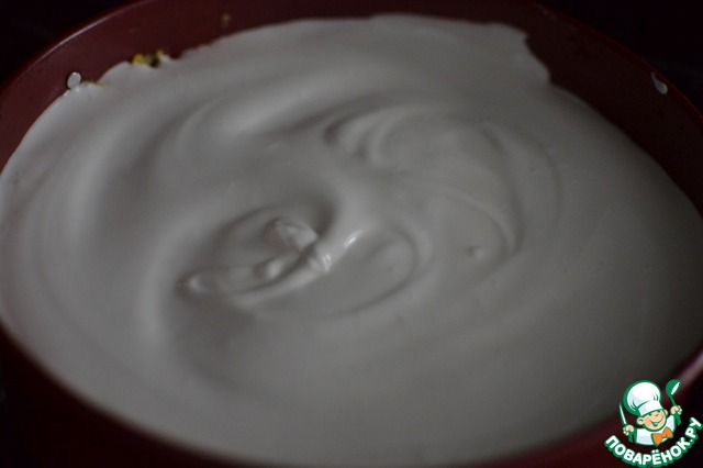 Сверху выложить безе и выпекать еще 15-20 минут до зарумянивания безе.
