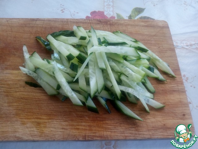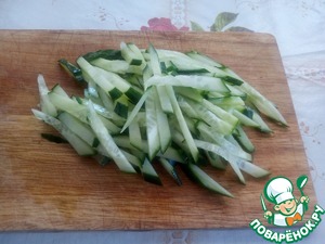 Соломкой нарезаем огурец.