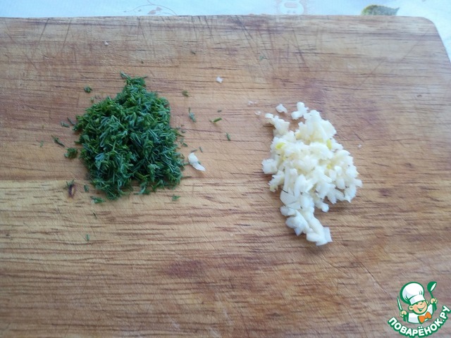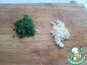 Мелко нарезаем зелень и чеснок.