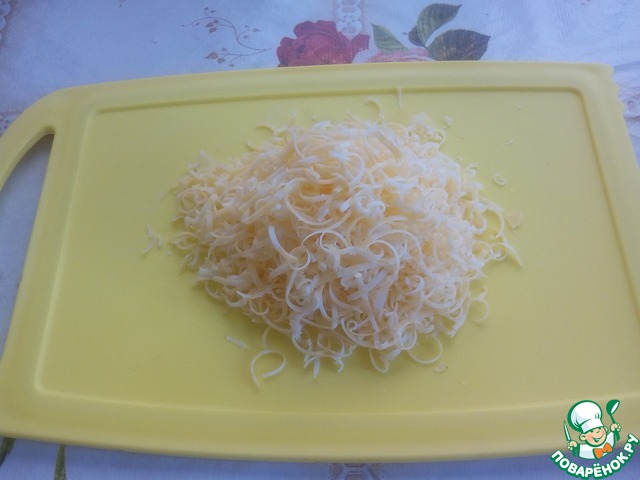 Сыр трем на мелкой терке.