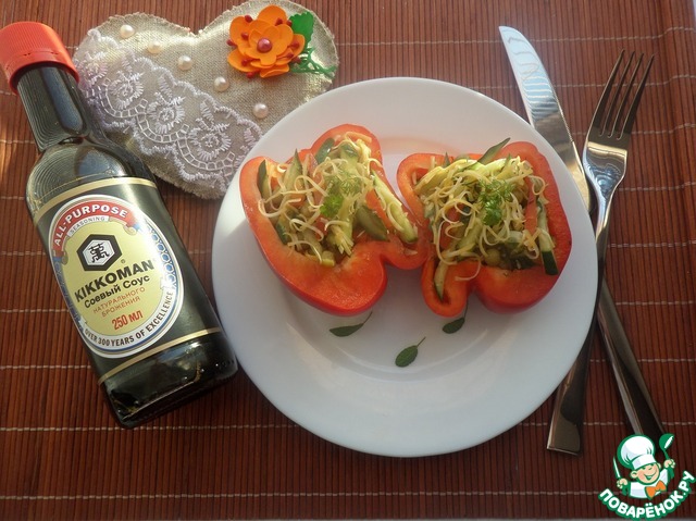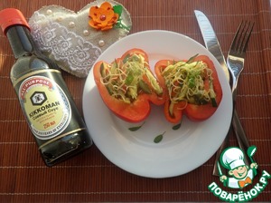 Выкладываем салат в половинки болгарского перца. Подаем.
