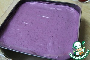 Выложить половину черничного мусса (выход, к стати, около 1,5 литров!).