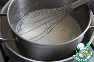 Когда торт замерз, готовим Швейцарскую меренгу на водяной бане, смешав белки и сахар.