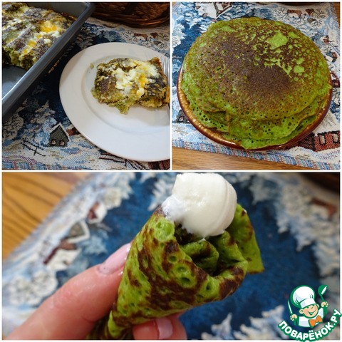 Рецепт «Шпинатные блинные рулеты с капустой»: