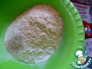 Отдельно в миске смешать два вида муки и дрожжи САФ МОМЕНТ. Удобно перемешивать венчиком, очень хорошо все соединяется.