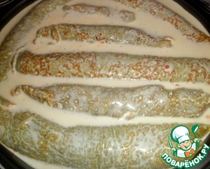 Смешать сметану с молоком, добавить соль по вкусу и щепотку сахара, ( можно добавить свои любимые специи) залить сверху рулетики и поставить в духовку 170°C на 25-30 минут. -
