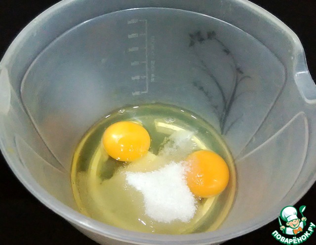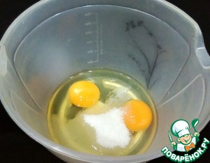Соединить яйца, соль, сахар и тщательно перемешать.