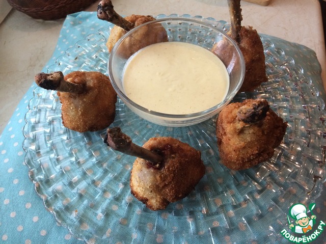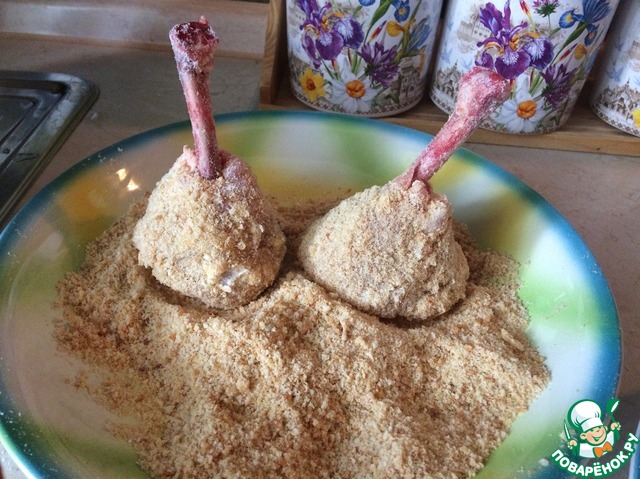 2. Обмакиваем наши ножки сначала в муку, затем в яйцо и хорошенько обваливаем в панировочных сухарях.