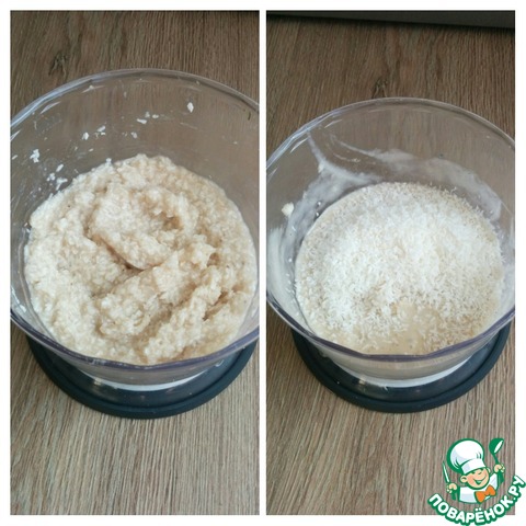 Добавляем кокосовую стружку. Количество указано примерное, так как нужно ориентироваться по консистенции — тесто для печенья должно быть не слишком жидким, но и не слишком крутым.