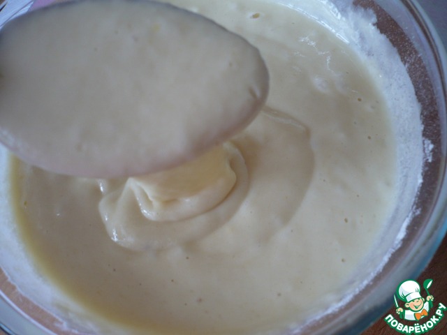 Тесто должно получиться — насыщенным пузырьками воздуха.