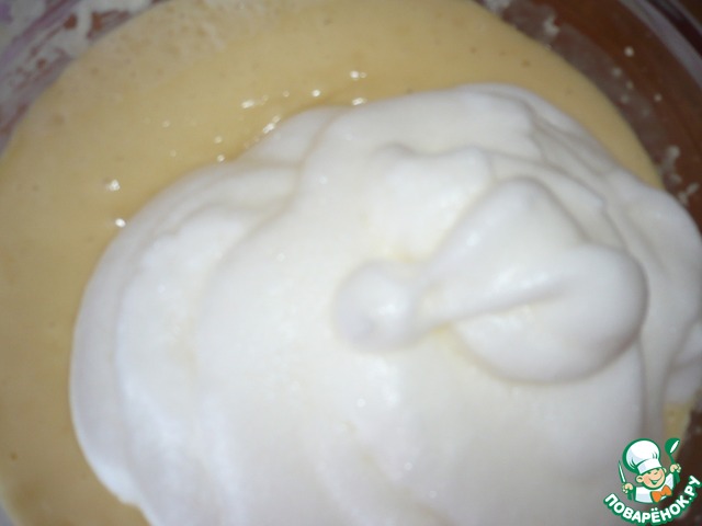 Взбить белки в устойчивую пену и аккуратно в два приема добавить их в тесто.