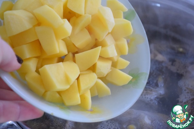 Через 20 минут добавляем к рыбе картофель, соль. Варим минут 5.