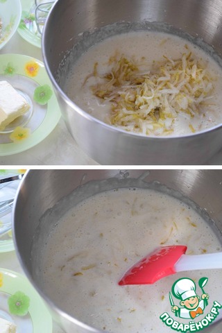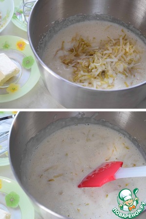 Добавить к тесту грушу (хорошо отжать, если пустила много сока) и аккуратно перемешать лопаточкой.